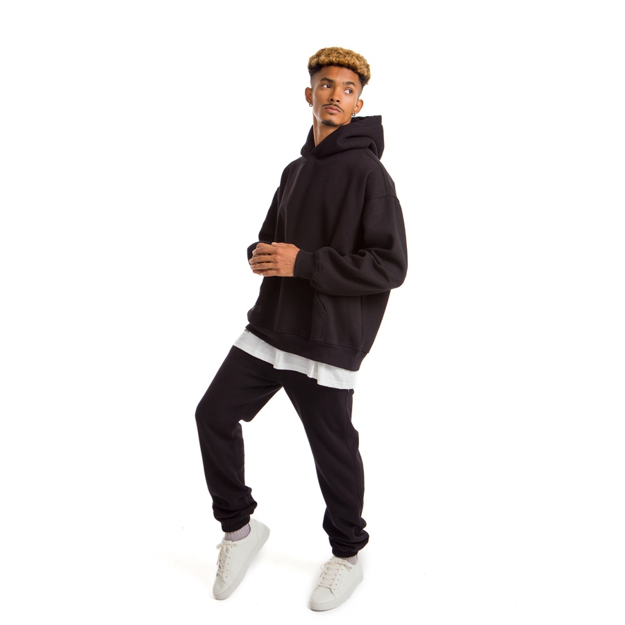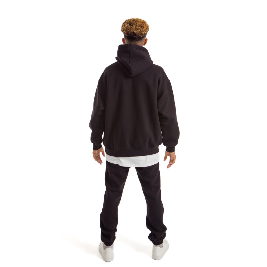 Hoodie set crafted from a cotton blend fabric, featuring a relaxed fit with a lined, drawstring hood, long sleeves, kangaroo pocket, and ribbing at the cuffs and hem. The soft brushed inside adds an extra layer of comfort, making this set a cozy pick for everyday wear—perfect for lounging at home, stepping out, or running errands.