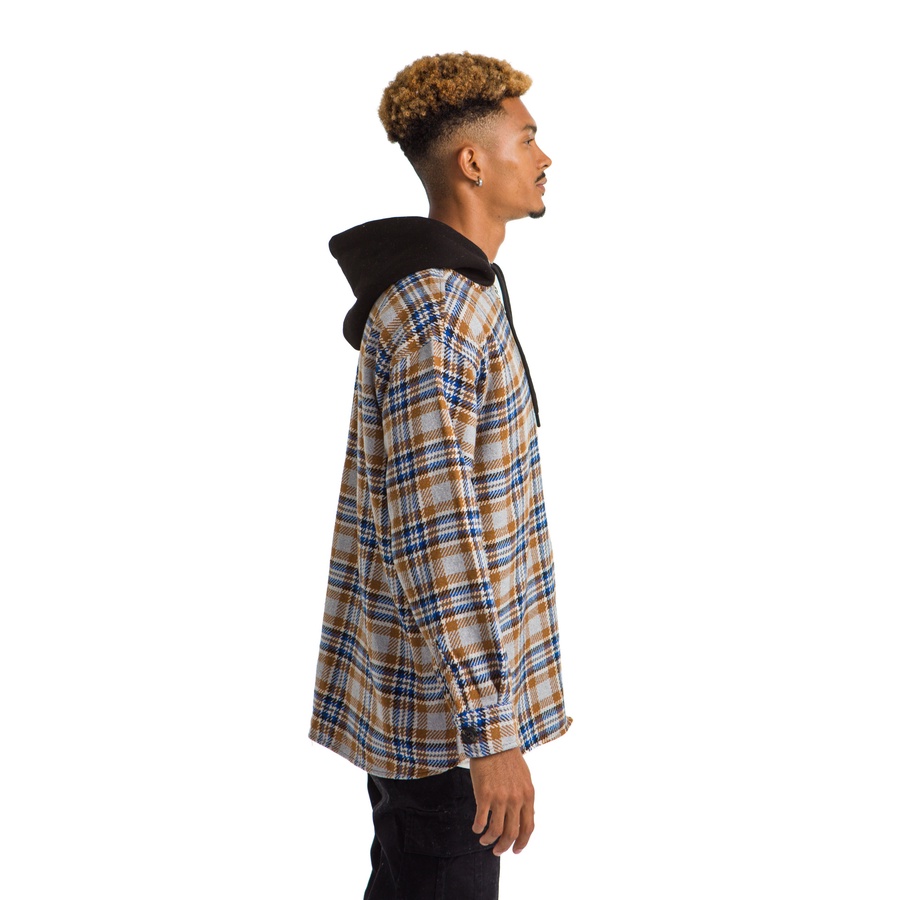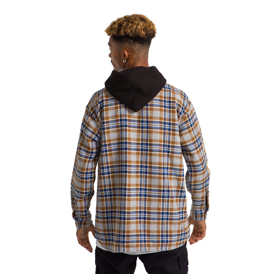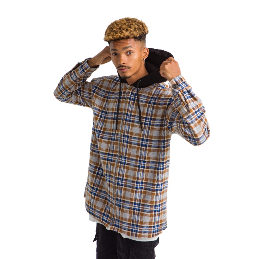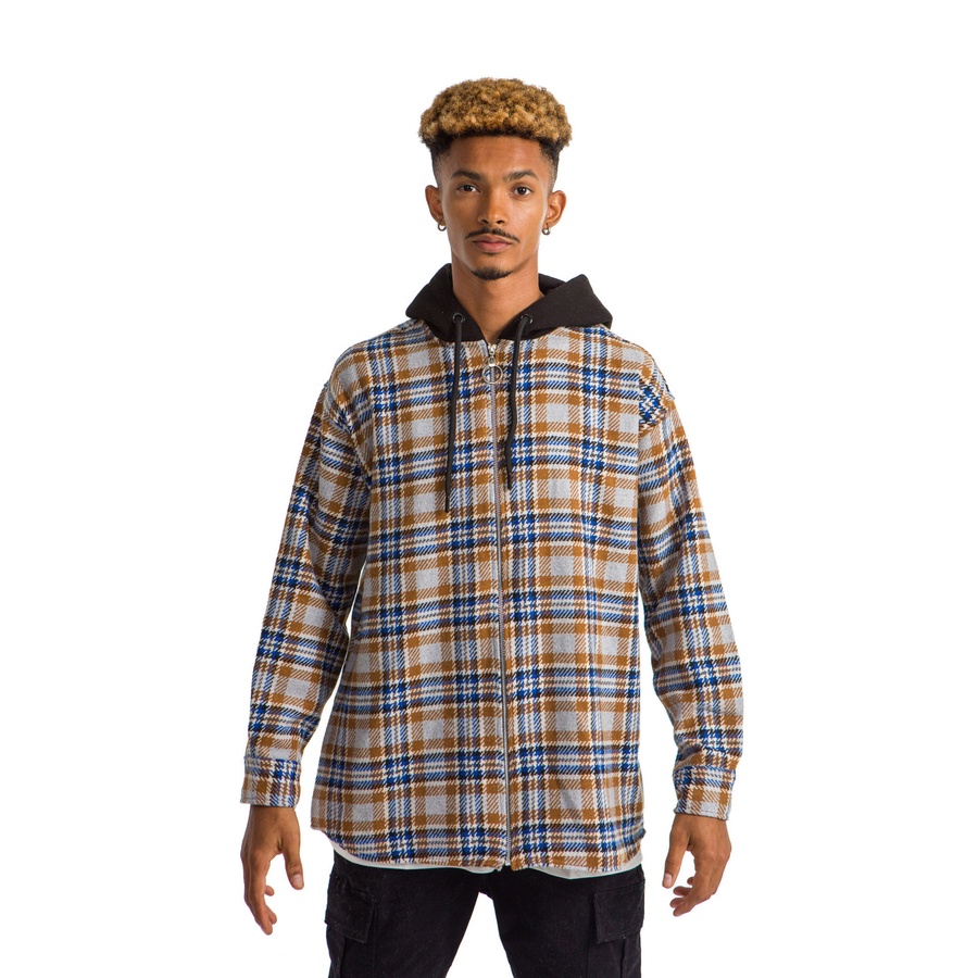 VINTAGE HOODIE CARO PLAID JACKET BLUE BEIGE