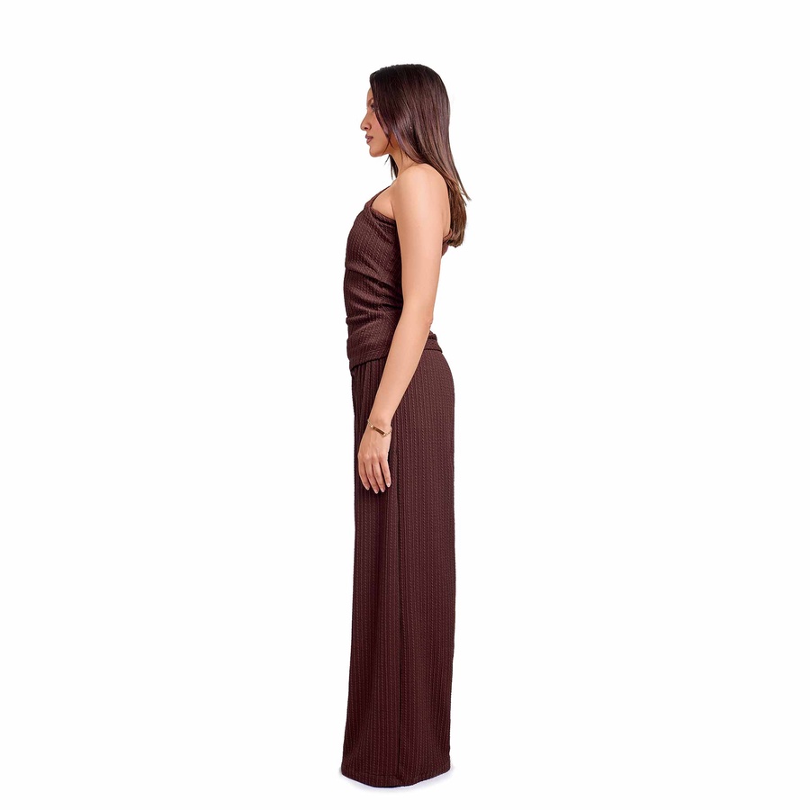 Jacquard set designed for both comfort and contemporary style, this matching top and pants ensemble stands out with a flattering asymmetric neckline and a relaxed silhouette. The soft, ribbed jacquard fabric delivers a cozy feel without sacrificing a refined, modern look—perfect for lounging in style or stepping out with confidence.