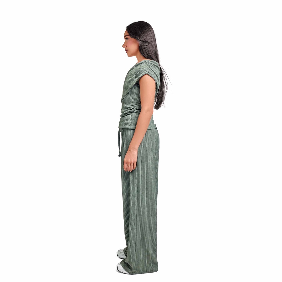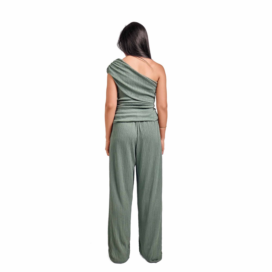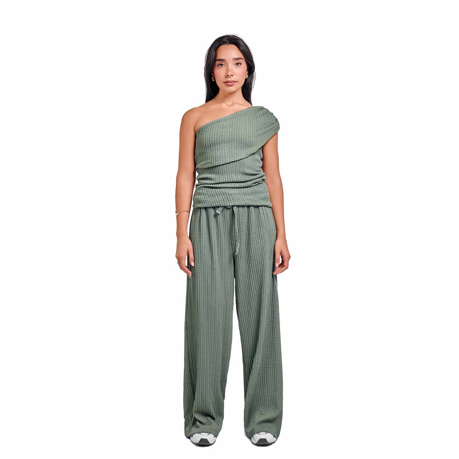 Jacquard set designed for both comfort and contemporary style, this matching top and pants ensemble stands out with a flattering asymmetric neckline and a relaxed silhouette. The soft, ribbed jacquard fabric delivers a cozy feel without sacrificing a refined, modern look—perfect for lounging in style or stepping out with confidence.