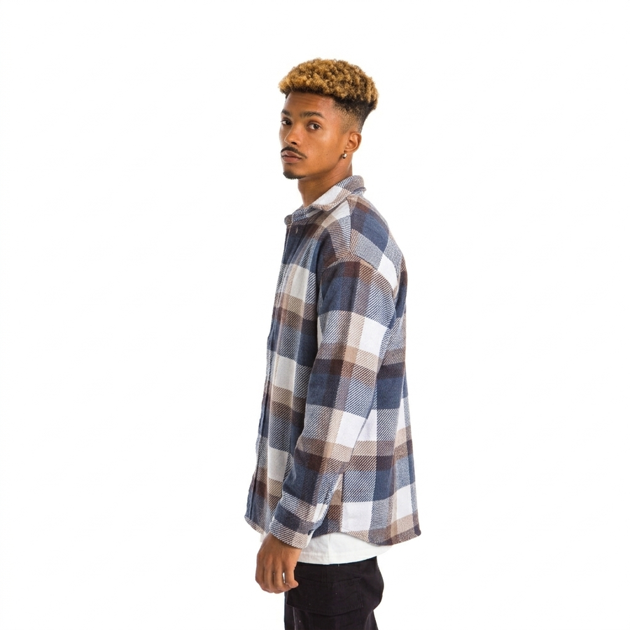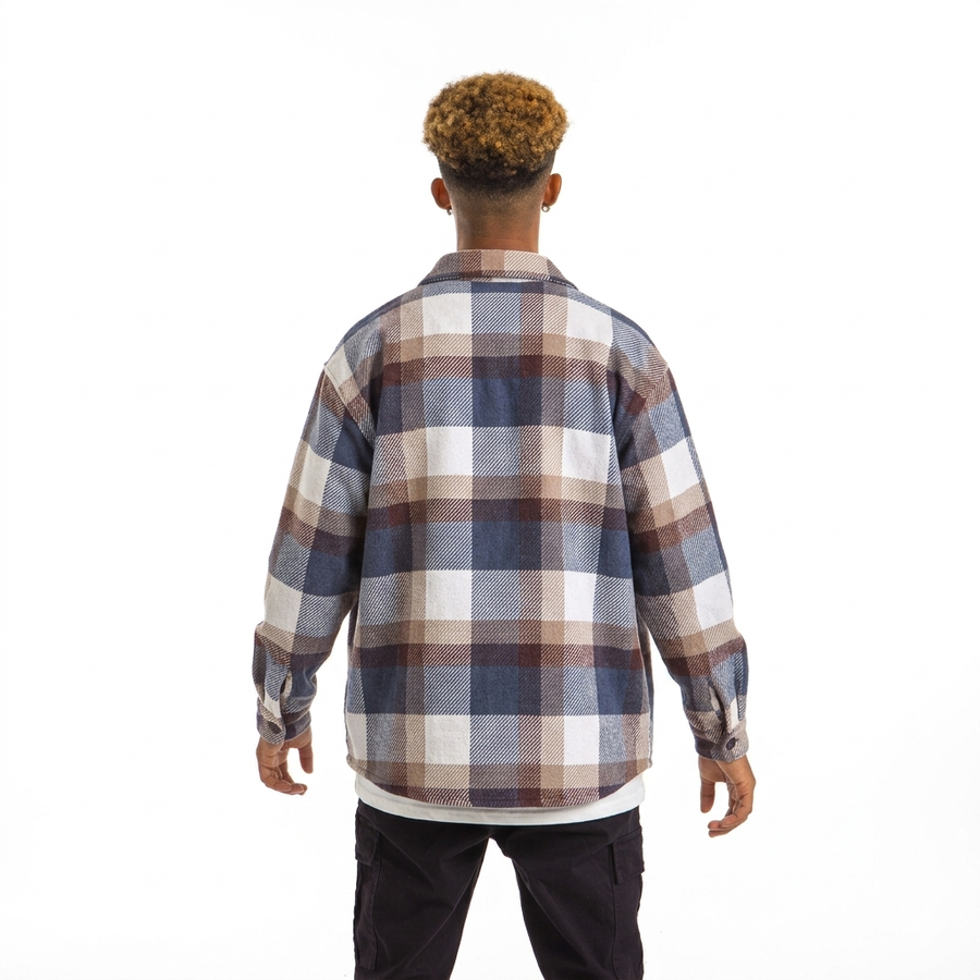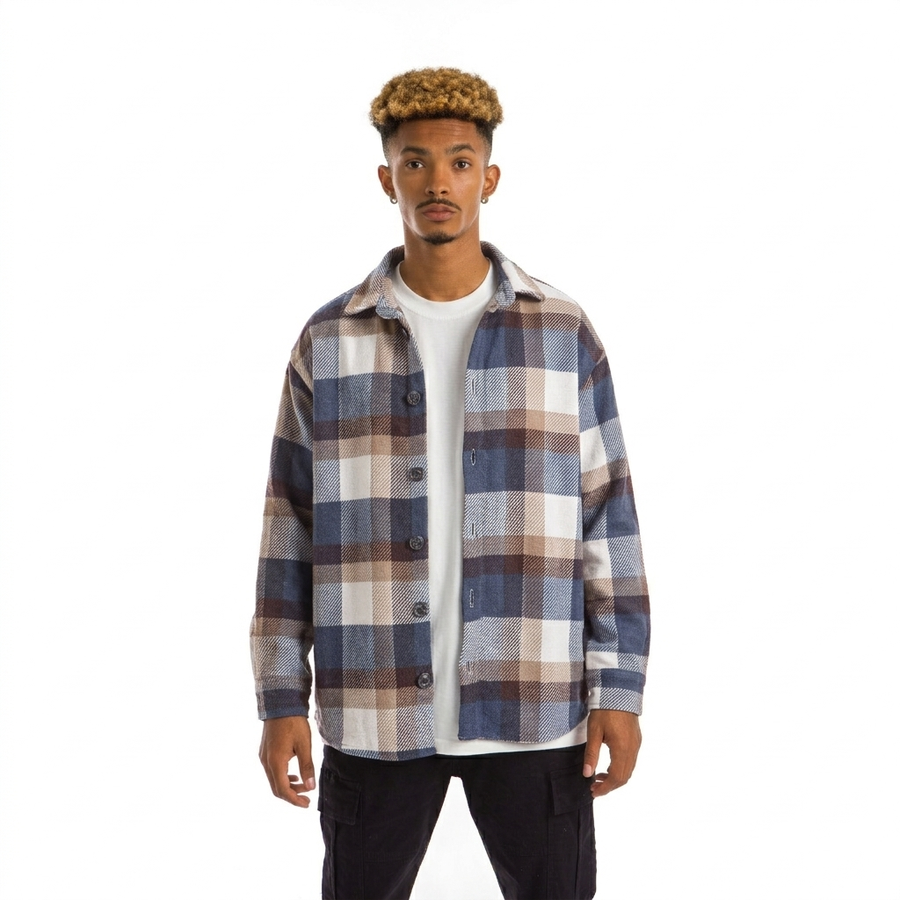 Oversized plaid shirt designed for a modern casual look. Made from comfortable, durable fabric and can be worn as a shirt or as a light jacket over a t-shirt. Perfect for everyday wear and easy to style with jeans or casual pants.