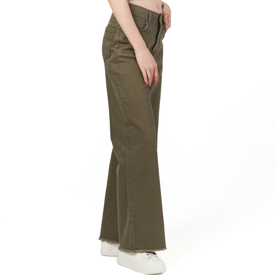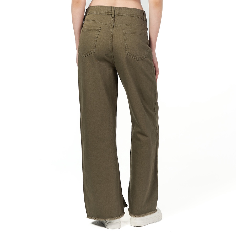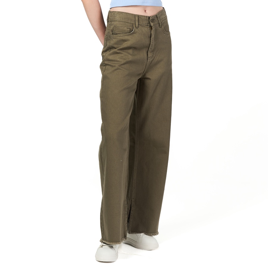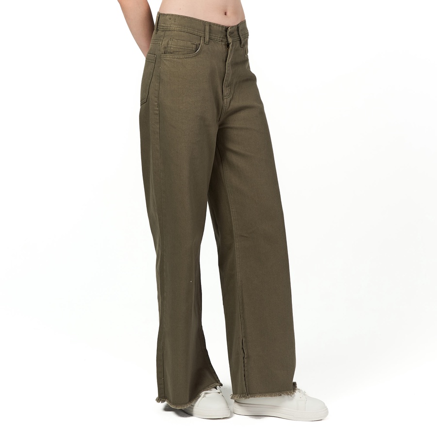 Olive wide leg gabardine pants with a high rise and wide leg for a cool, slouchy fit. Made from dreamy, drapey stretch fabric in a scratched style. Comfortable to wear, suitable for all styles.