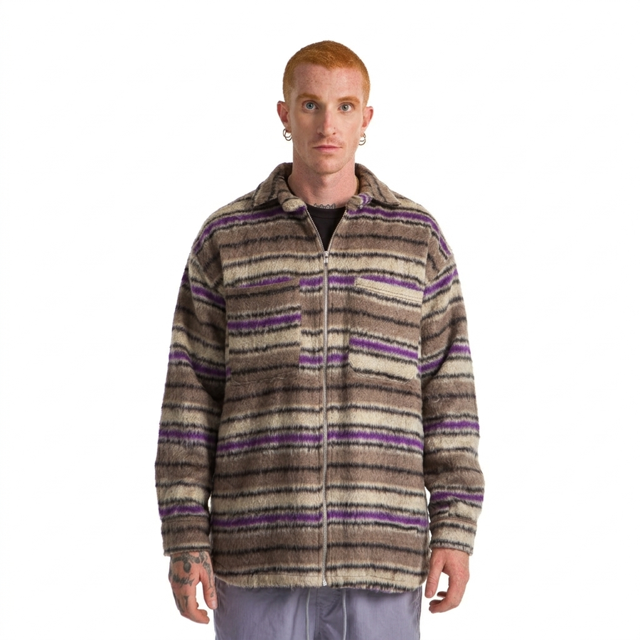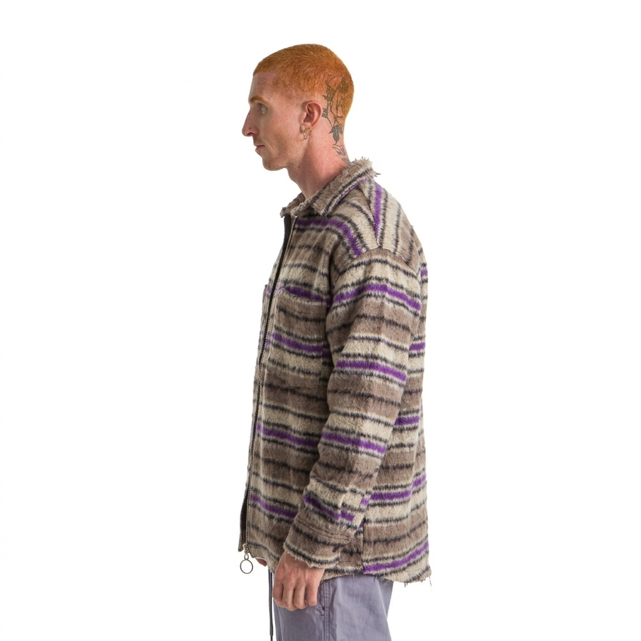PLAID JACKET WAVY PURPLE, BEIGE LINE