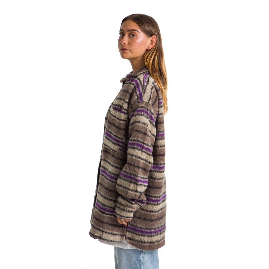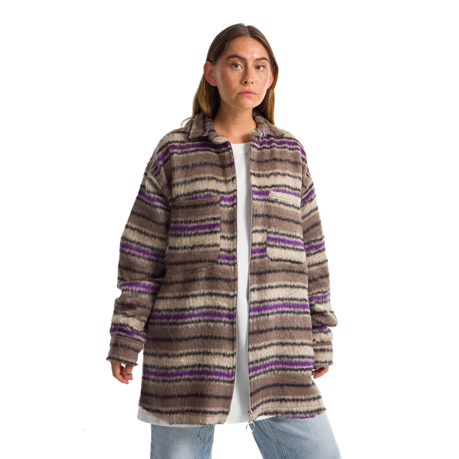 WOMEN PLAID JACKET WAVY PURPLE, BEIGE LINE
