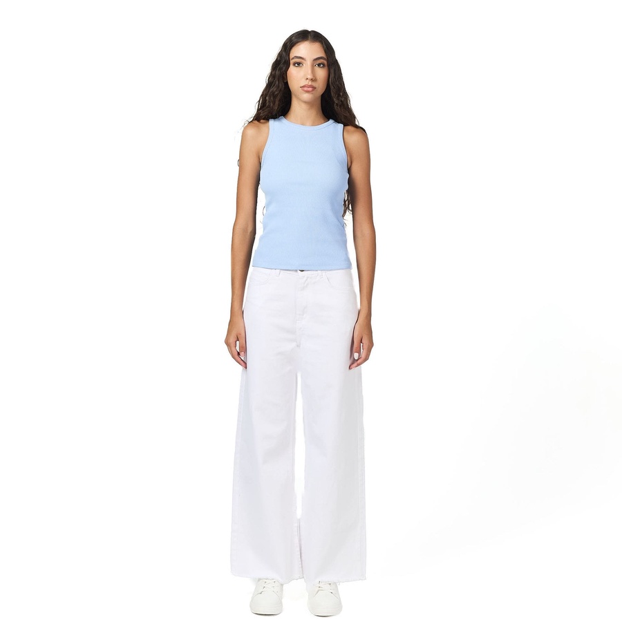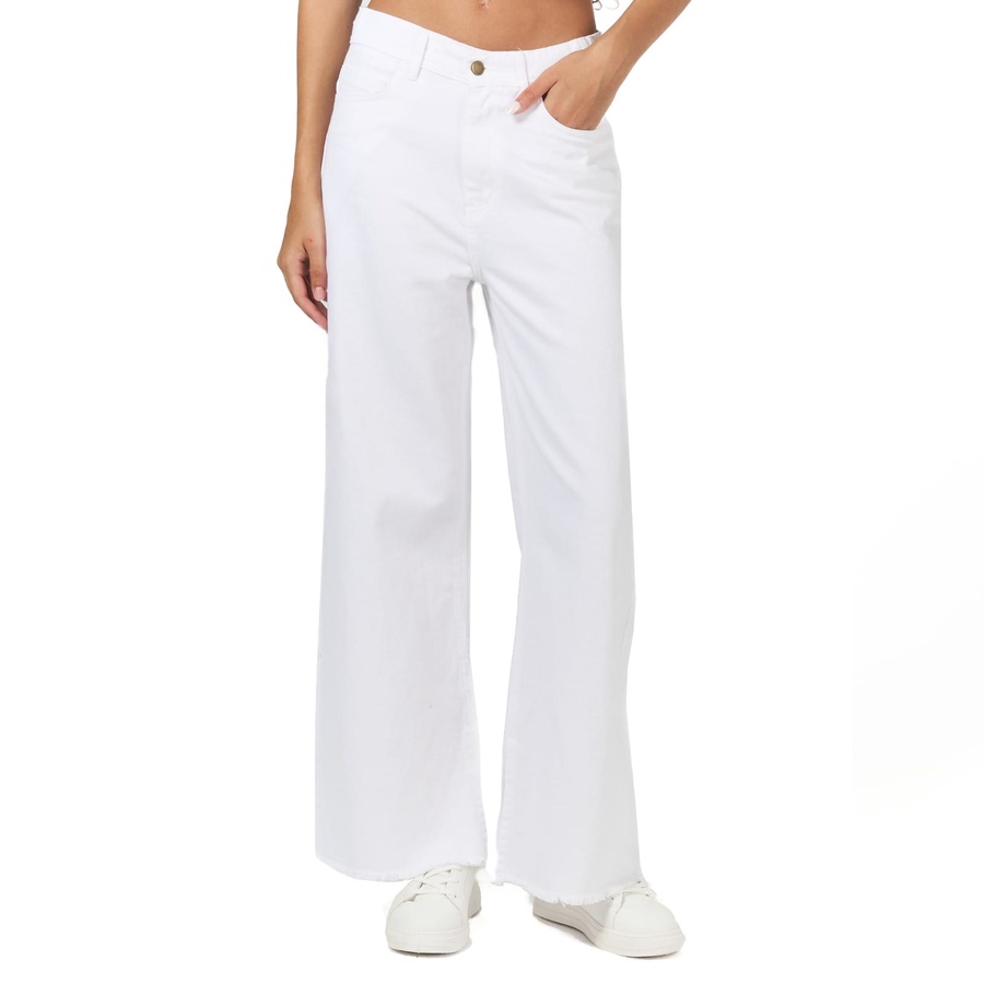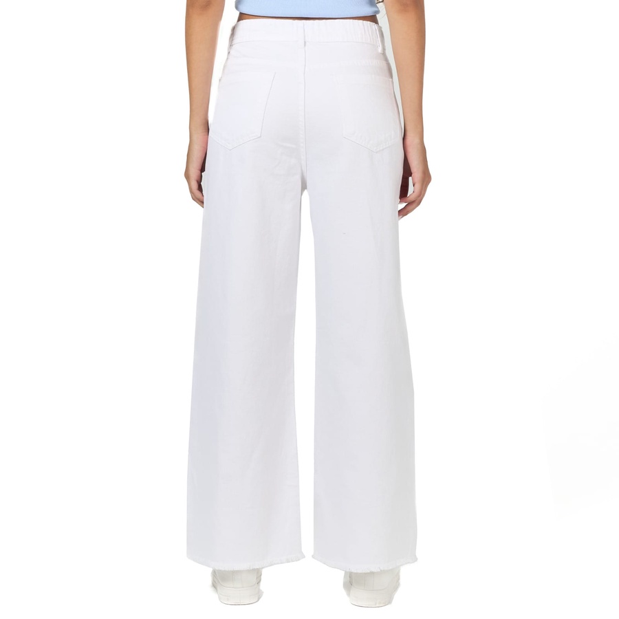 White wide leg gabardine pants with a high rise and wide leg for a cool, slouchy fit. Made from dreamy, drapey stretch fabric in a scratched style. Comfortable to wear, suitable for all styles.