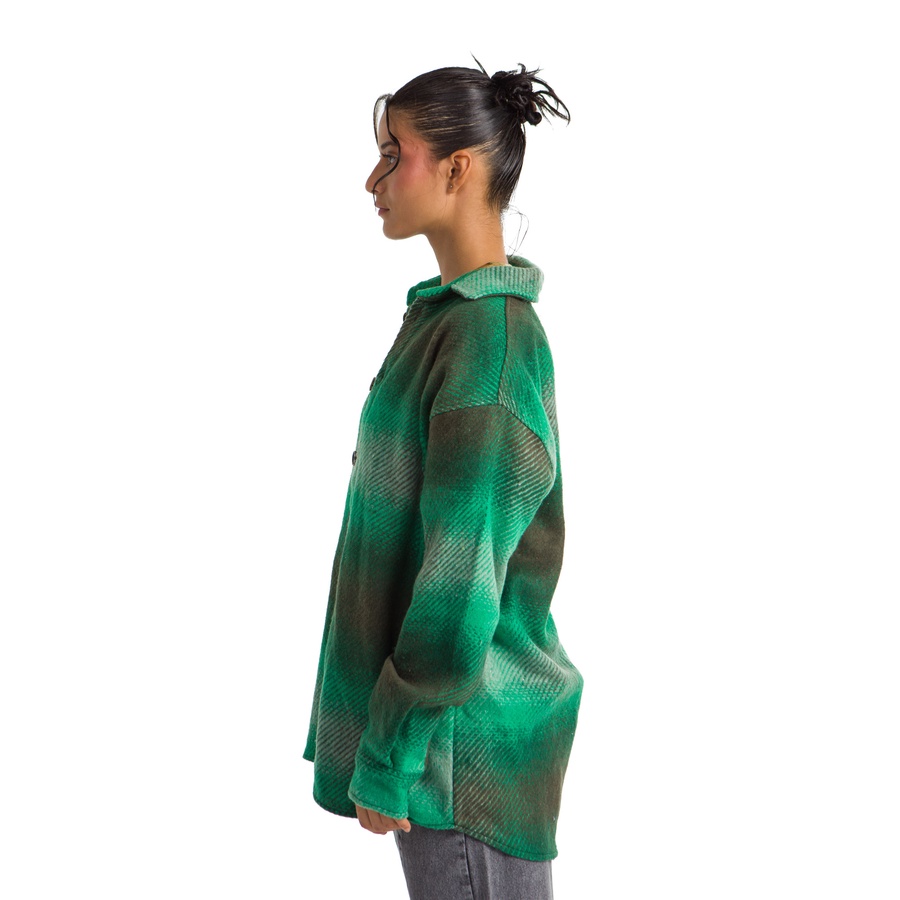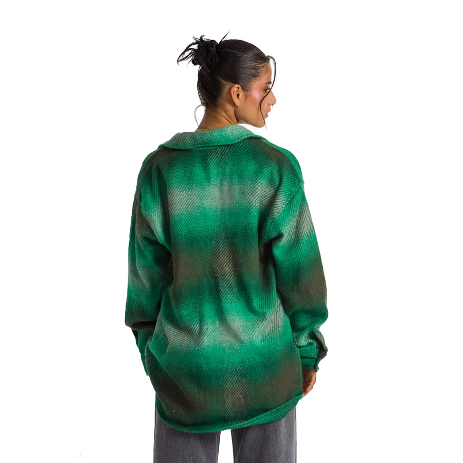 WOMEN`S HEAVY LONG-SLEEVE SHIRT OVERSIZED GREEN NEON WIDE STRIPED