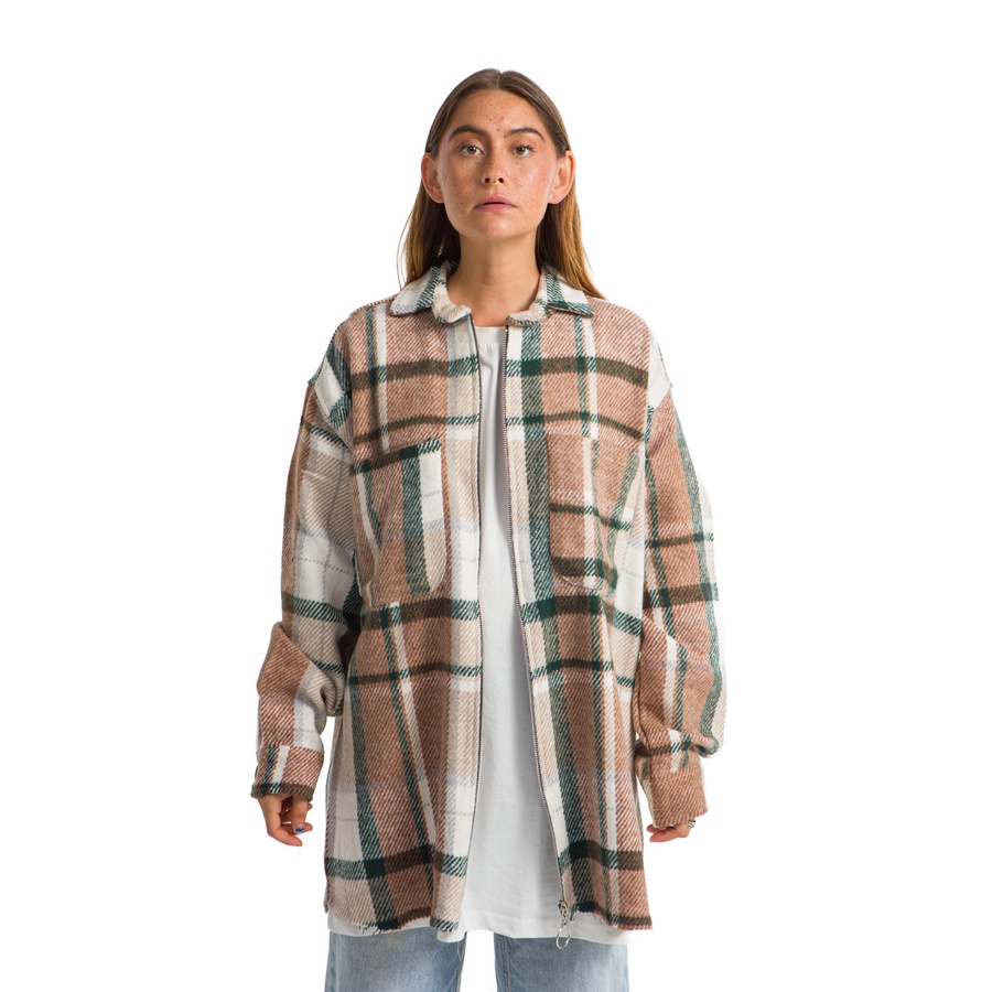 Oversized plaid shirt designed for a modern casual look. Made from comfortable, durable fabric and can be worn as a shirt or as a light jacket over a t-shirt. Perfect for everyday wear and easy to style with jeans or casual pants.