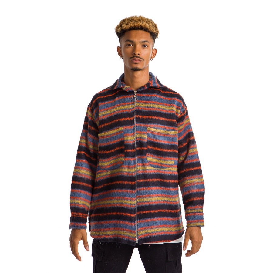 VINTAGE AND WOOL ZIPPED PLAID JACKET WAVY LINES